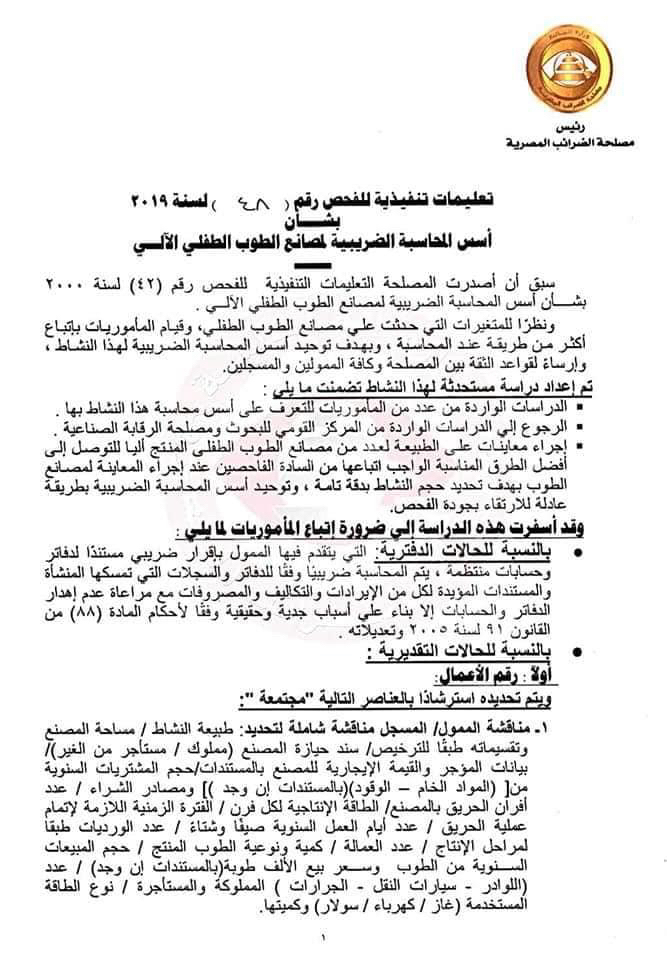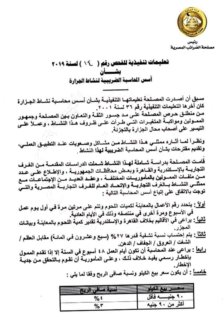 أسس المحاسبه الضريبيه لنشاط الجزاره والطوب الطفلي