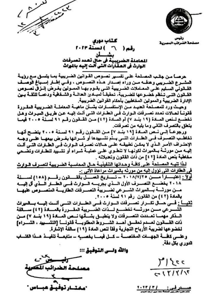 المعامله الضريبيه في حاله تصرف عقاري واحد وفي حاله تعدد التصرفات..