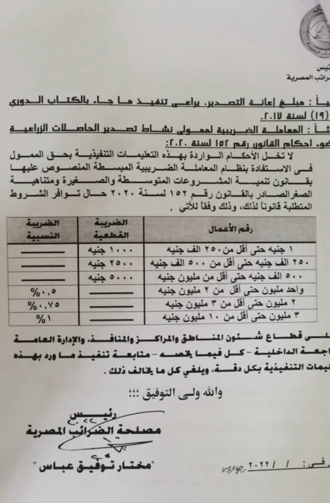 تعليمات تنفيذية رقم (32) لسنة 2026، صادرة عن مصلحة الضرائب المصرية، اليوم الخميس، بشأن ملحق للتعليمات التنفيذية رقم (96) لسنة 2022، بشأن أسس المحاسبة الضريبية لنشاط تجارة المصوغات بالتجزئة. تعليمات تنفيذية و كتب دورية, خطابات البحوث 2026, ضرائب دخل