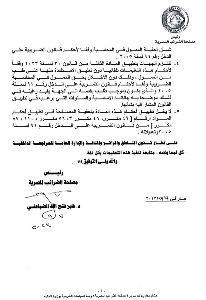 تعليمات تنفيذية رقم (95) لسنة 2023، بشأن آليات تطبيق المادة الثالثة من القانون رقم (30) لسنة 2023، الصادر بتعديل بعض أحكام قانون الضريبة على الدخل رقم (91) لسنة 2005.
