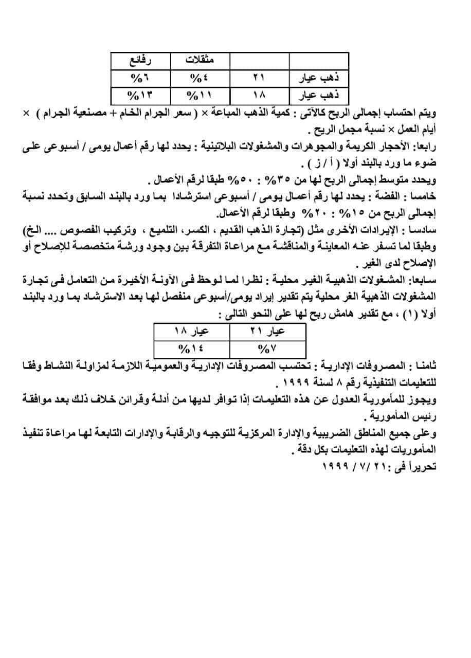 وتحتوى علي نسبة تشغيل الجرام ونسب إجمالي الربح لكل عيار