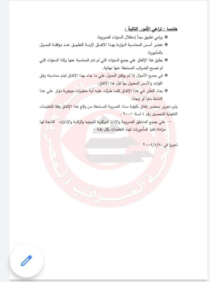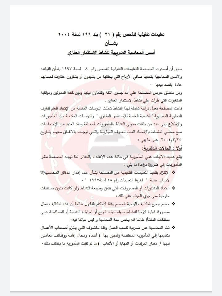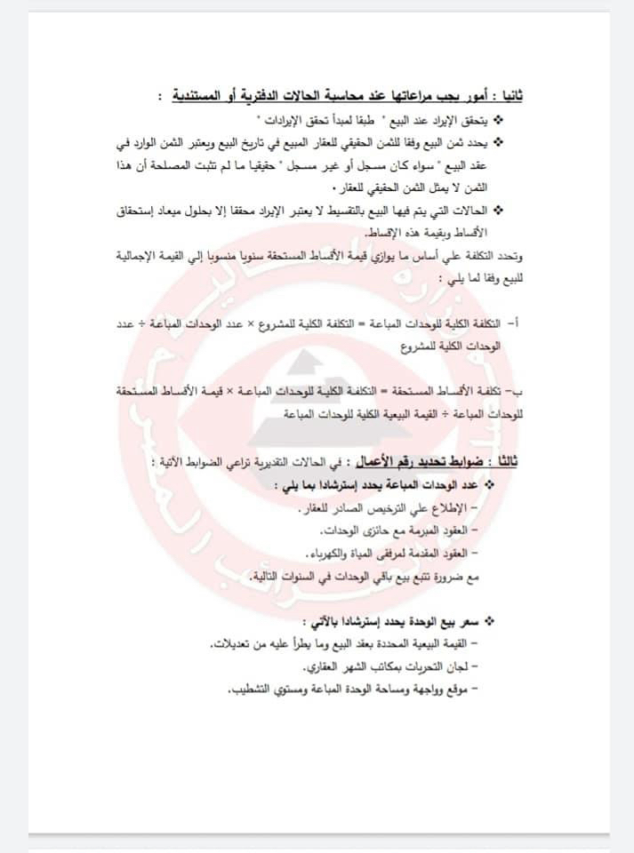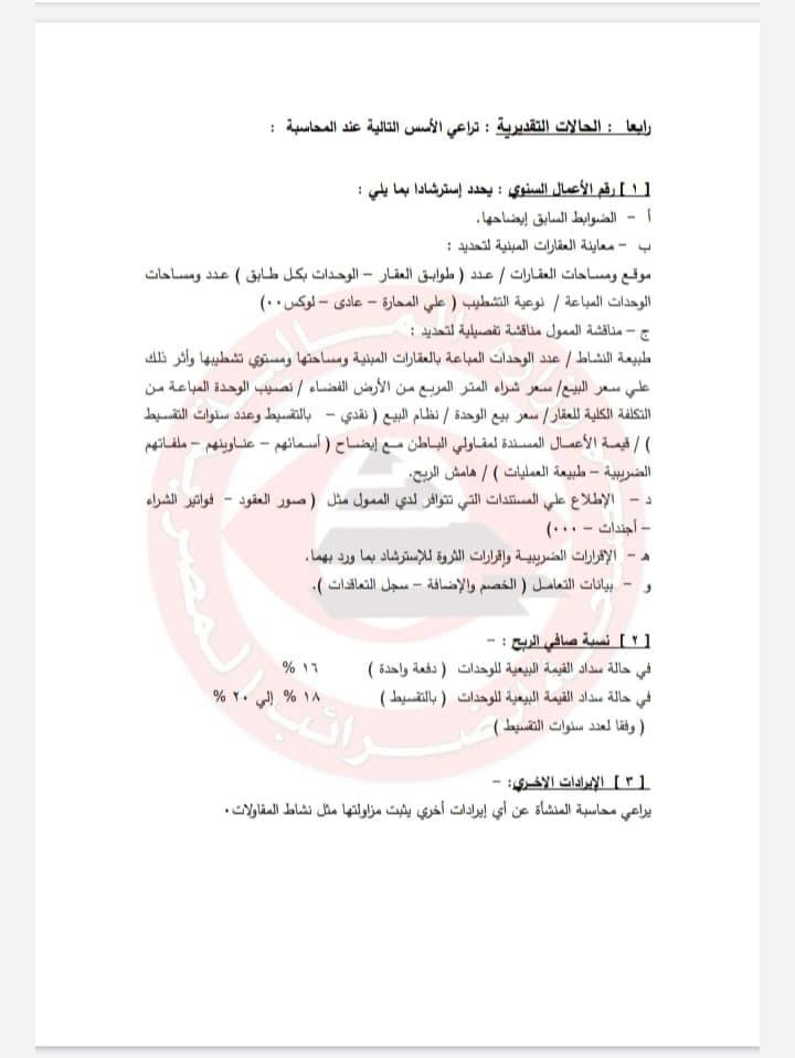 تعليمات تنفيذيه للفحص أسس المحاسبه الضريبيه للإستثمار العقاري