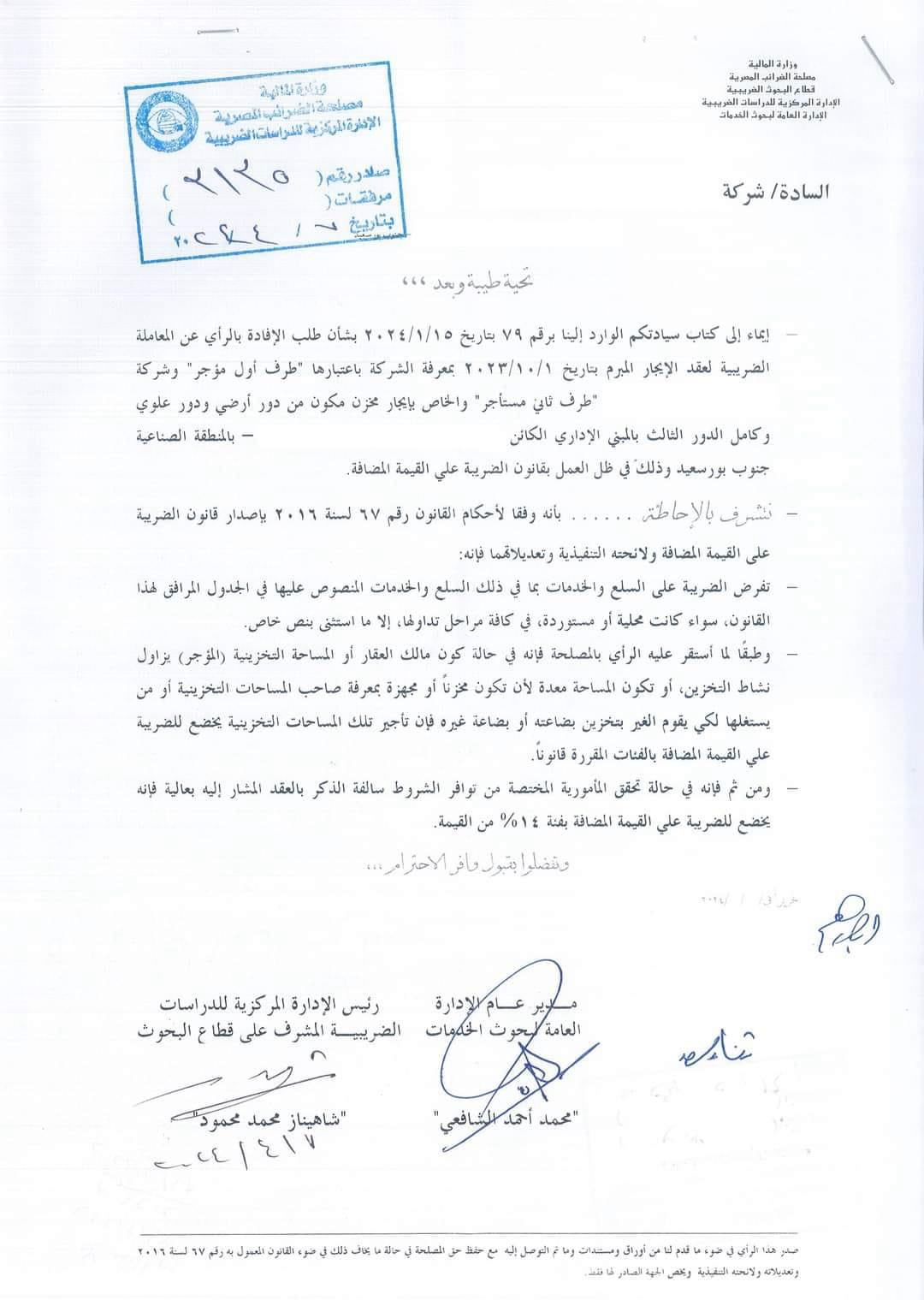 خضوع ايجار المخازن لضريبة القيمة المضافة