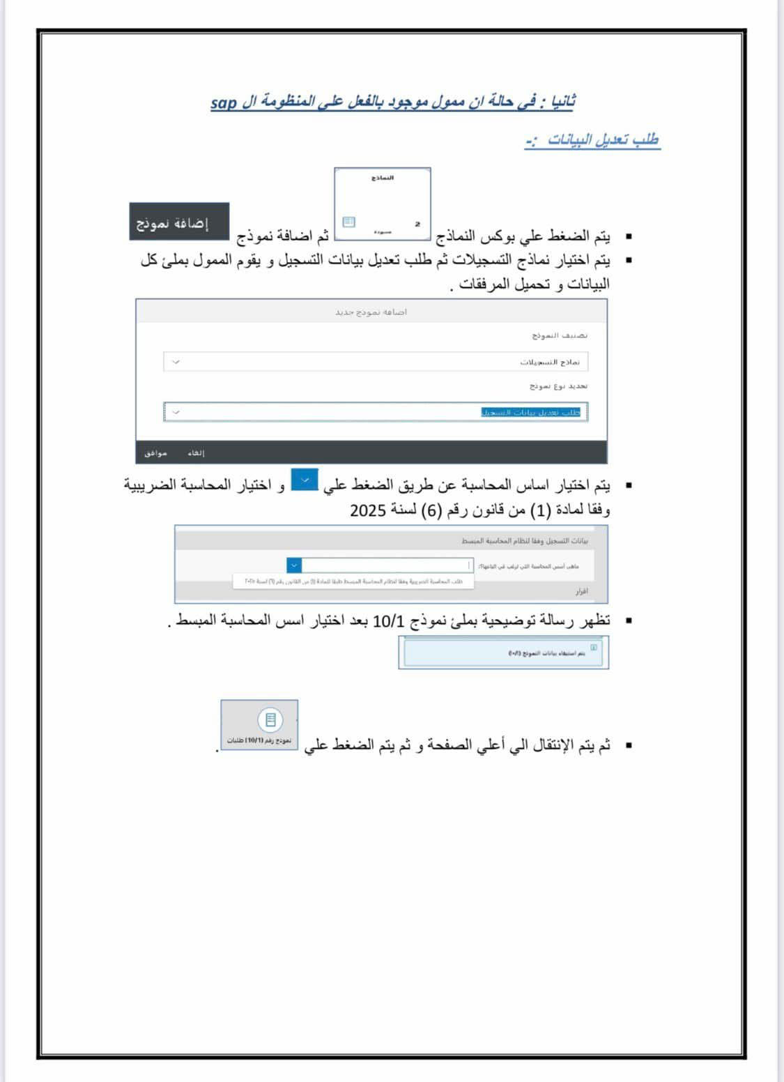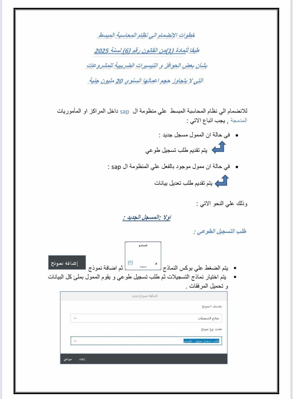 خطوات الانضمام الي نظام المحاسبة المبسط علي منظومة ال (sab) داخل المراكز او المأموريات المدمجة طبقا للمادة (1) من قانون رقم (6) لعام 2025 بشأن بعض الحوافز و التيسيرات الضريبية للمشروعات التي لا يتجاوز حجم اعمالها السنوي 20 مليون جنيه