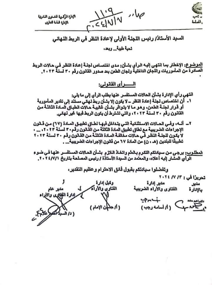 عدم اختصاص لجان اعادة النظر فى الربط النهائى (ضريبة الدخل) بتطبيق المادة الثالثة من القانون ٣٠