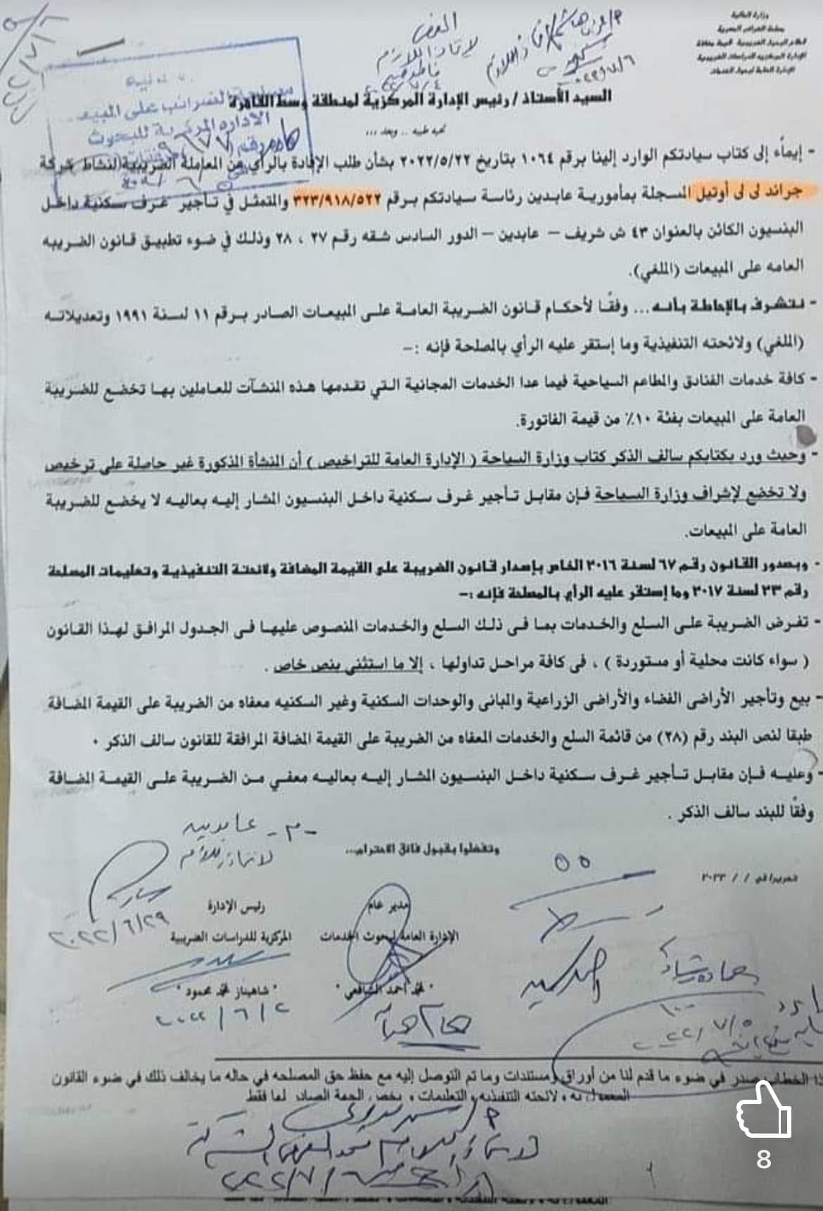 عدم خضوع ايجار حجرات البنسيون الغير سياحيه للضريبه على القيمة المضافة