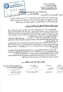 طبقا لاحكام المواد ( ۲۳ / (۳۱) من قانون التجارة الصادر بالأمر العالي في ١٣ نوفمبر ۱۸۸۳