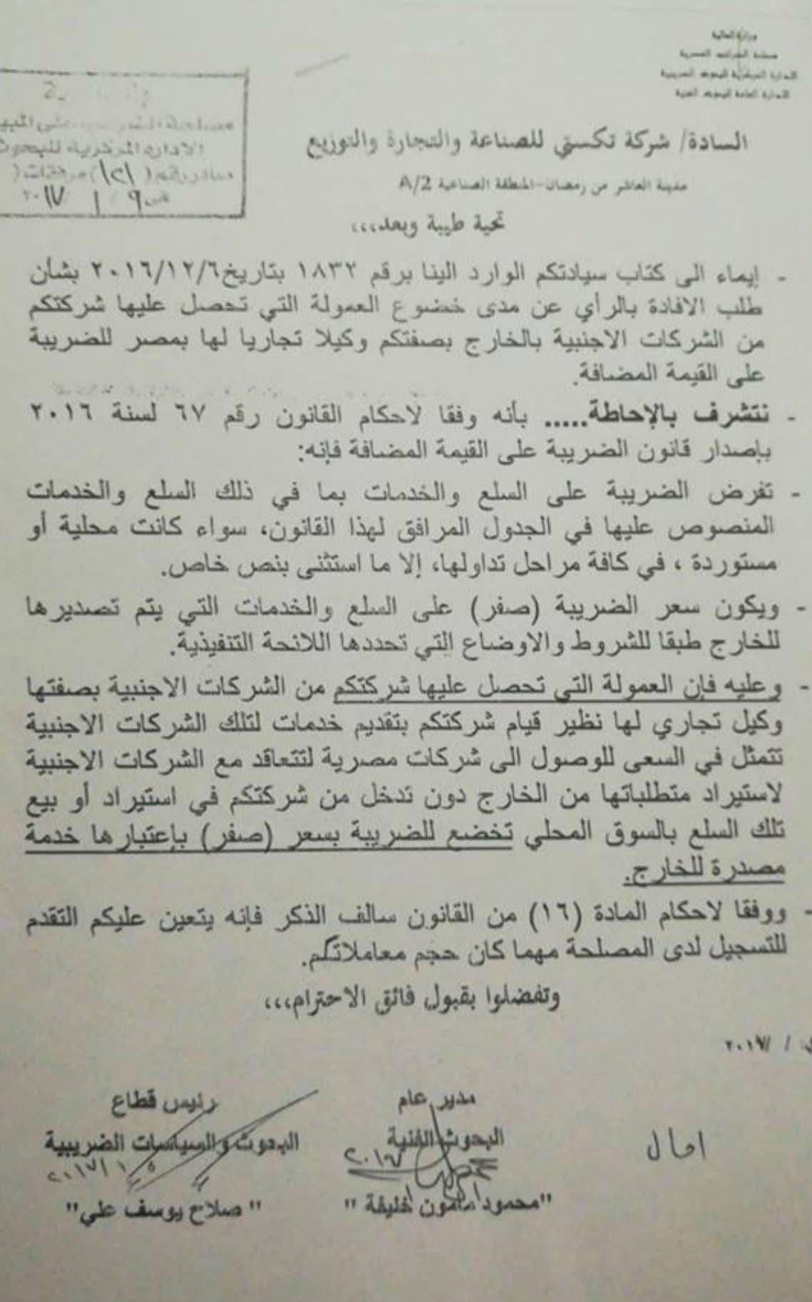 فتوى البحوث الضريبيه بعدم خضوع العموله الممنوحه من الشركات الاجنبيه للشركات المصريه