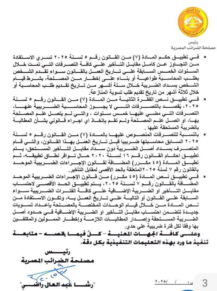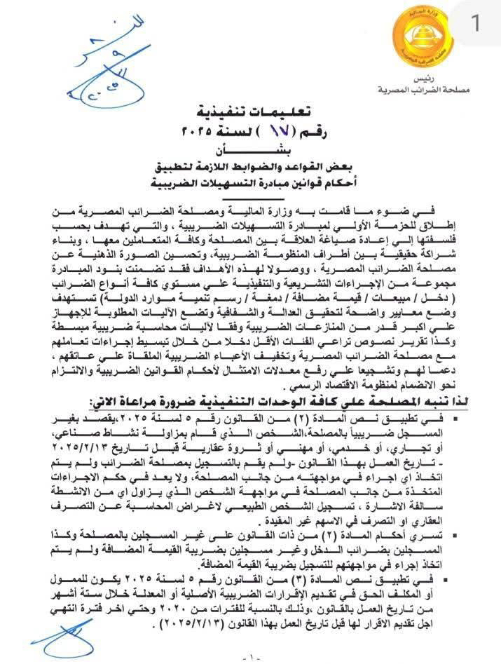 مصلحة الضرائب تصدر تعليمات تنفيذية رقم ١٧ لسنة ٢٠٢٥ الخاصة لقوانين التسهيلات الضريبية ارقام ٥ و ٦ و ٧ لسنة ٢٠٢٥ توضح و تفسر القوانين بالكامل